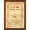 Pour une vraie prononciation et une vraie compréhension du Coran, inimitable, il est indispensable de l’apprendre à partir de sa claire langue arabe.S’appuyer sur une traduction de ses sens, ou sur une transcription phonétique, en caractère latins ne permet en aucun cas une juste prononciation des lettres arabes et par conséquent ça fausse la lecture du coran.Il existe plusieurs méthodes authentiques et efficaces pour apprendre le Coran par coeur et sa claire langue arabe et savourer ainsi la beauté, la puissance et la lumière miraculeuse qui émanent de la paroles d’Allah.Juzz’Amma est le 30éme et dernier chapitre du saint Coran.Il comprend 37 petites sourates dont 34 mecquoises et 3 médinoises, de la sourate An-Naba (78) jusqu’à la sourate An-Nas (114).Dans ce livre, juzz ‘Amma est précédé de la sourate Al-Fatiha (l’ouverture) et de Ayat Al-Kursi (Verset du Trône).Voici les sourates présentent dans le chapitre ‘Amma:L’Ouverture (Sourate Al-Fâtiha) Verset du Trône (Âyatou-l-koursiyy) La Vache (Al-Baqara) L’ Annonce (Sourate An-Naba’ ) Les Arracheurs (Sourate An-Nâzi’ât) Le Renfrogné (Sourate ‘Abasa) Le Décrochement (Soûrate At-Takwîr) La Rupture (Sourate Al-Infitâr) Les Fraudeurs (Soûrate Al-Mutaffifîne) La Déchirure (Sourate Al-Inchiqâq) Les Constellations (Sourate Al-Bouroûj) L’Astre nocturne (Sourate At-Târiq) Le Très-Haut (Sourate Al-A‘lâ) L’Enveloppante (Sourate Al-Ghâchiya) L’Aube (Sourate Al-Fajr ) La Cité (Sourate Al-Balad) Le Soleil (Sourate Ach-Chams) La Nuit (Sourate Al-Layl) La Clarté du jour (Sourate Ad-douhâ) L’Illumination (Sourate Ach-Charh) Le Figuier (Sourate At-Tîn) L’Adhérence (Sourate Al-‘Alaq) La Destinée (Sourate Al-Qadr) La Preuve (Sourate Al-Bayyina) La Secousse (Sourate Az-Zalzala) Les Coursiers (Sourate Al-‘Âdiyât) Le Fracas (Sourate Al-Qâri‘a) La Rivalité (Sourate At-Takâthour) Le Temps (Sourate Al-‘Asr)